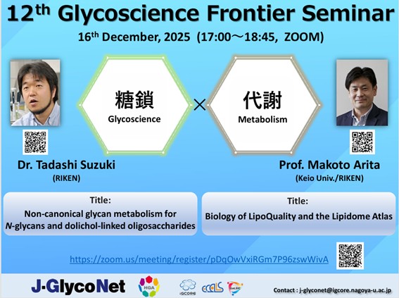 糖鎖と異分野の融合を促進するための新しいセミナー “Glycoscience Frontier Seminar”を開催しています。