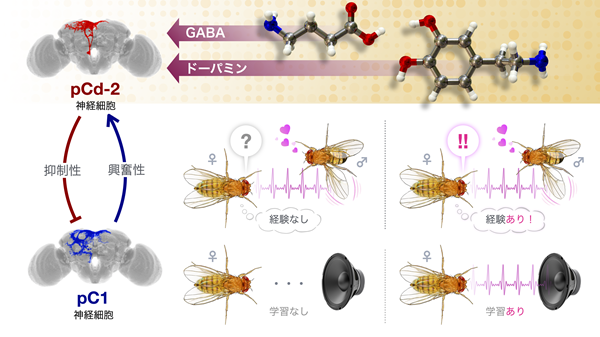 図1 過去の音経験によって「求愛歌」のリズム識別能力が向上する脳の仕組みを、ショウジョウバエを使って解明